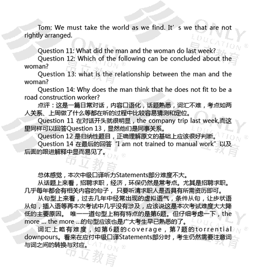 昂立教育 > 項目總攬 > 口譯 > 口譯新聞 > 0709中口聽力Q11-14文本與點評