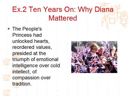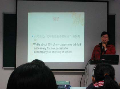 “以上的這些問題,都和中國英語傳統教學方法,導致的雙語基本功差脫不了干系!”顧微老師坦言道,養成良好的閱讀習慣是當務之急。在良好學習習慣的影響下,語言環境、英語興趣、知識面…等一系列問題都能豁然而解。顧微老師現場為同學朗誦了兩段英文小品《Mother Teresa’s crisis of faith》、《Ten Years On: Why Diana Mattered》.