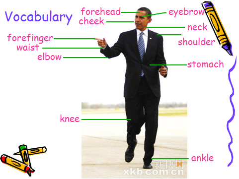 這是一個前后傳承的過程,老師教學的寓教于“趣”,在很大程度上影響著小學員們的學習興趣與積極性!懊绹氯慰偨y奧巴馬!”當這張圖片剛一出來,小學員們就叫了出來。王老師引用了名人效應,立刻提起了孩子們的興趣。不需要引導,他們就自己開始熟悉圖片上的單詞,不僅僅是孩子,連家長們也饒有興趣的跟著讀。這是一個比較簡單的人身體部位的單詞記憶,如此一來,學習會更加直觀,印象會更加深刻。課堂上的氣氛一下子變的活躍起來,誰說英語學習是單調無味的呢?