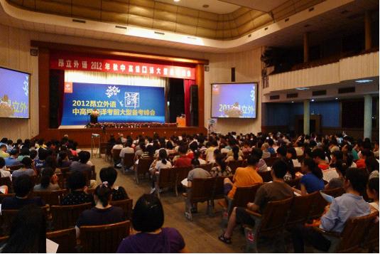 秋天,是收獲的季節,在2012年的這個秋季,昂立口譯再一次為學員送上了一場口譯備考的饕餮盛宴,讓考生們收獲考試技巧、收獲必勝的信心。98日晚18:30,昂立外語2012年秋季口譯峰會在交大徐匯校區大禮堂隆重舉行。作為昂立外語王牌口譯的傳統活動,口譯峰會受到廣大口譯考生的極大關注,現場超過300人參加。本次峰會不但延續了歷年口譯峰會的強大名師陣容,豐富備考內容等優勢,更引入了微博互動與抽獎環節,讓峰會會場內外都人氣爆棚,成為一大新亮點。
