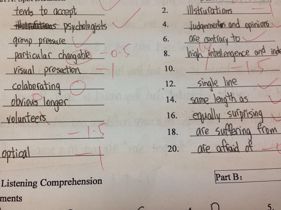作為聽力部分第一個考題,考驗的主要是大家最基本的辨音能力和拼寫能力,考試時手眼協調,筆記為輔,謄寫時仔細復查。這個題型是在最后階段密集訓練,會有較大提升的一個題型,但是在考試時,還需注意以下幾點。
