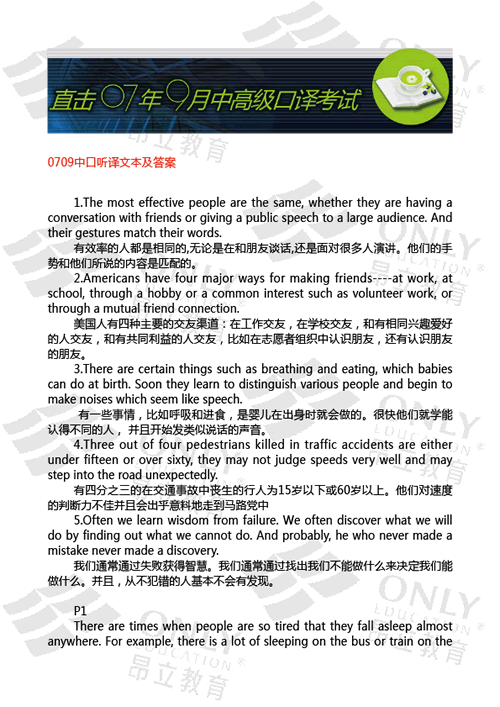 07年9月中口聽譯文本及答案 發表時間:2007-09-16