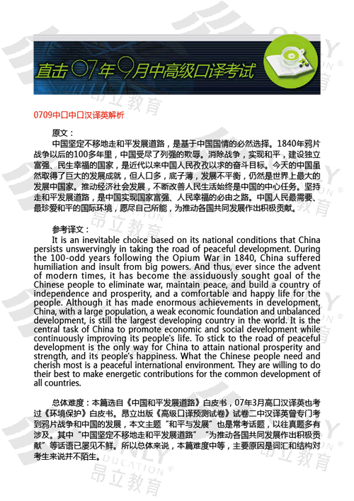 0709中口英譯漢解析 發表時間:2007-09-17