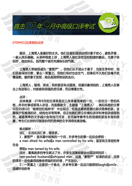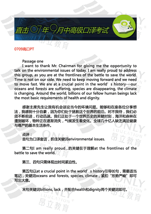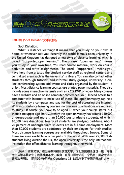 0709中口Spot Dictation文本及解析 發表時間:2007-09-16