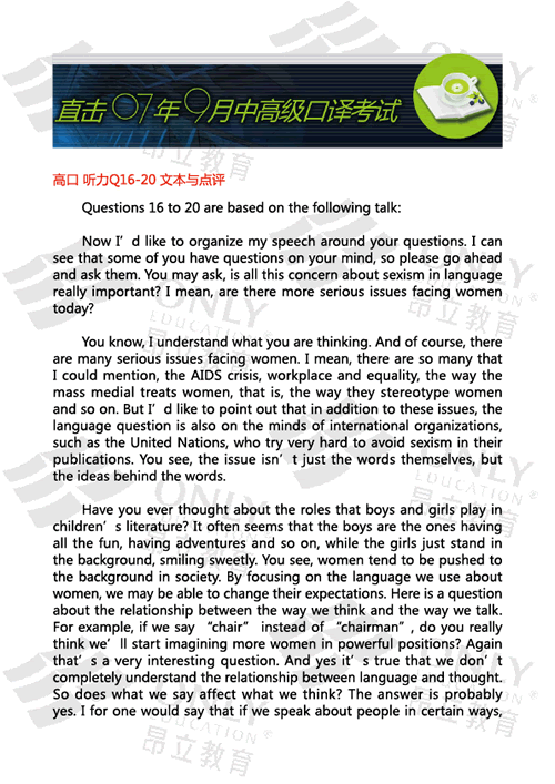 高口聽力Q16-20文本與點評 發表時間:2007-09-16