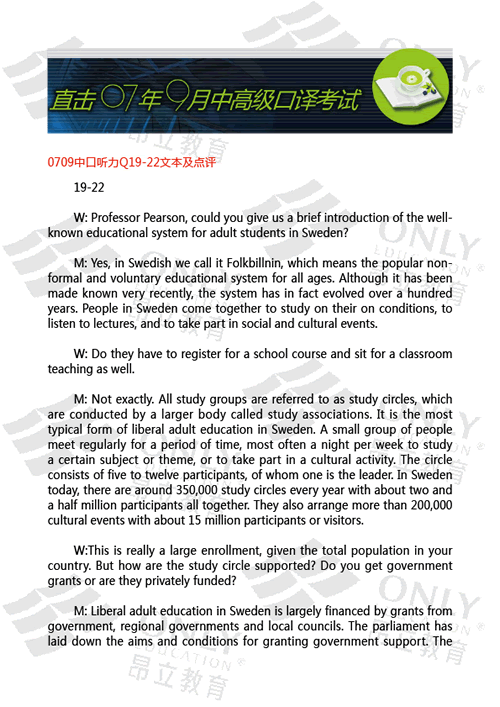 中口聽力Q19-22文本及點評 發表時間:2007-09-16