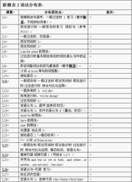附昂立新概念2完美教學講義語法分布圖(部分):