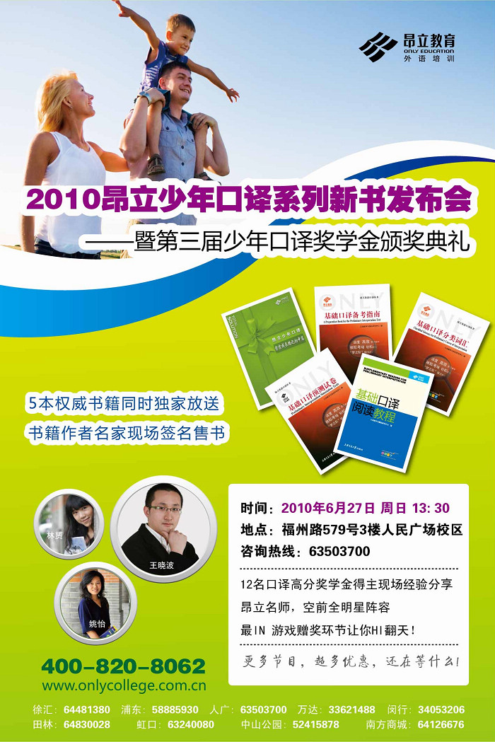 昂立教育 > 項目總攬 > 基礎口譯 > 少口新聞 > 6月27日昂立邀你參加-新書發布會暨少年口譯慶功會