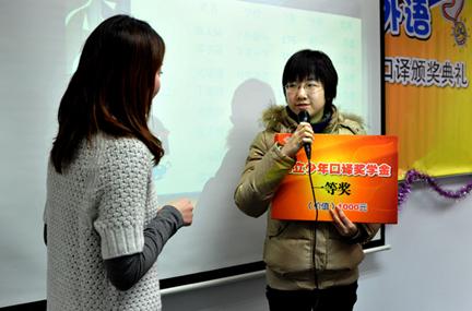 (2010年秋季昂立基礎口譯一等獎獎學金獲得者陳天陸同學)