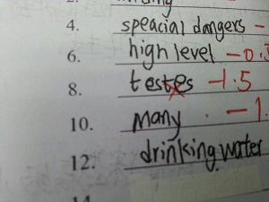 此類錯誤非常可惜,其實很多單詞都非常簡單,拼寫錯誤純屬粗心,如dangerous拼成dangrous, environment 漏寫一個n等。