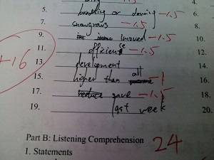 基礎口譯 SD每個空格要填的單詞不超過三個,可是原本三個單詞的 higher than normal, 卻有考生的答案是higher and more and more,非常明顯的錯誤。