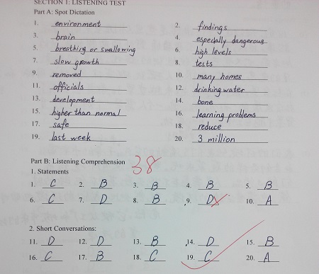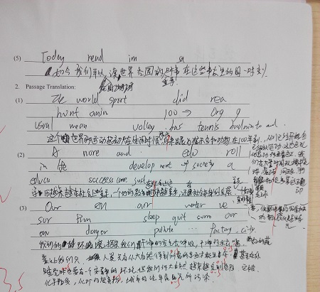 這位同學把答卷當成了草稿紙,英文夾雜著中文,請問你究竟是讓老師看哪里?