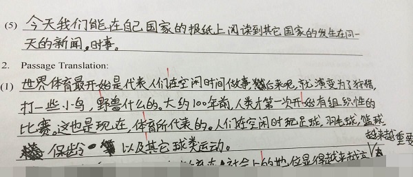 在有限的時間內,有這樣的呈現實屬不易,可見這些學生對高頻詞的敏感度非常高,short-term memory也很不錯,平日的練習一定不少。我們在做聽譯時,一定要在理解的基礎上輔以筆記,在平日的練習中不斷加強自己抓去關鍵詞的能力,遇到生詞大膽放棄,目標是翻出大致意思即可。
