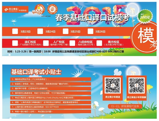 2014年春季基礎口譯考試最高分164.5分,上海實驗學校西校唐小丫同學斬獲。
