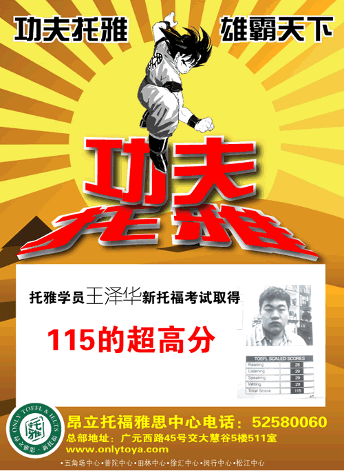 小托福能力提高班-YY-ZS-165288 開班時間:2016-07-04 上課時間:09:00-12:10 價格:7080