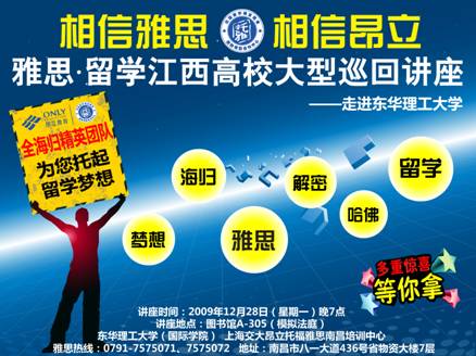 相信雅思、相信昂立,昂立雅思/留學高校大型巡講第二站于20091228在東華理工大學成功舉辦!