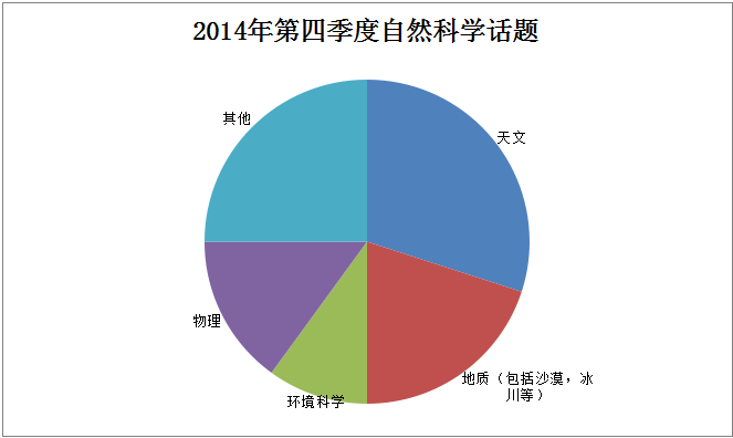 自然科學類的話題是第四季度的重頭戲,一共20篇。除了天文學6篇,地質學4篇,環境科學2篇和物理3篇外,還有地球科學、生態學、氣象學(2篇)、材料科學的內容,其中氣象學考察了兩篇。