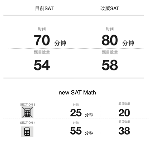 下面我制作了兩張圖,給大家直觀得對比一下SAT數學部分改革前后的變化。