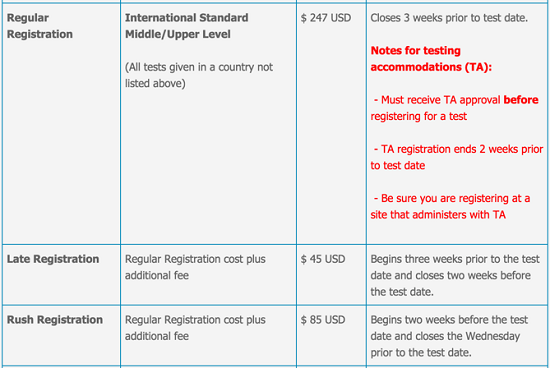 根據SSATB官方給的考試時間表(http://www.ssat.org/test-site/Documents/2015_16AtAGlanceMU72.pdf能夠趕上美高材料遞交節點應該只剩下1114那一場抓緊時間報名,千萬不要錯過,錯過常規報名的時間節點之后,雖然還可以在考試前兩周通過Late Registration的形式報名甚至是考試那周的周三前通過Rush Registration的形式報名考試,但是其中額外分別需要支付45美金(Late Registration/85美金(Rush Registration