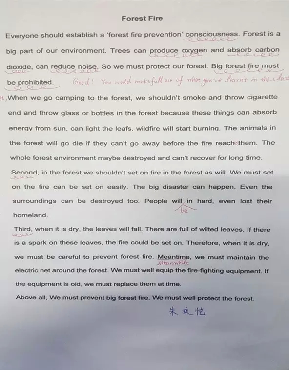 首先要知道什么是野火(wildfire)。然后要知道野火帶來的一系列危害。如:會造成森林大火,威脅人類的財產和生命安全,造成不明因素的爆炸事故。之后要構思野火是如何產生的? 既然是野火,那一定是由未知因素造成的。這里的因素可以分為兩類:自然和人為。由自然造成的野火,最常見的有雷電災害,氣候干燥,火山爆發等還有一些神秘事件。比如一只鳥抓住了一條蛇,然后甩到了高壓線上,然后蛇纏繞在上面,造成了短路制造出火星,產生了一場森林大火。而人為造成的,如隨意亂扔煙蒂,亂放煙花爆竹,狩獵野炊。既然明確知道了野火造成的原因。那抗擊野火的措施也就相當明了了。具體措施可以是禁止亂扔煙蒂,在樹林密集區少建高壓電線,在容易發生火情的區域設置消防局,氣候干燥的地方可以實施人工降雨等。這樣我們就可以把構思的內容主要拆分成三部分分別為開頭,主體和結尾。開頭為介紹段,主體為具體措施,以及詳細舉例,結尾要重申你的立場和觀點。