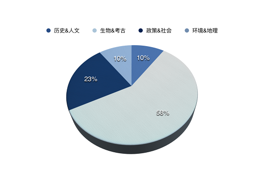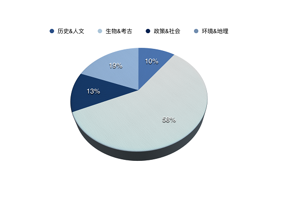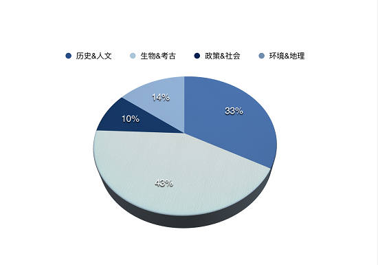 僅次于生物&考古類的高頻考題是歷史&人文類,占據14題,幾乎是全年的34%。