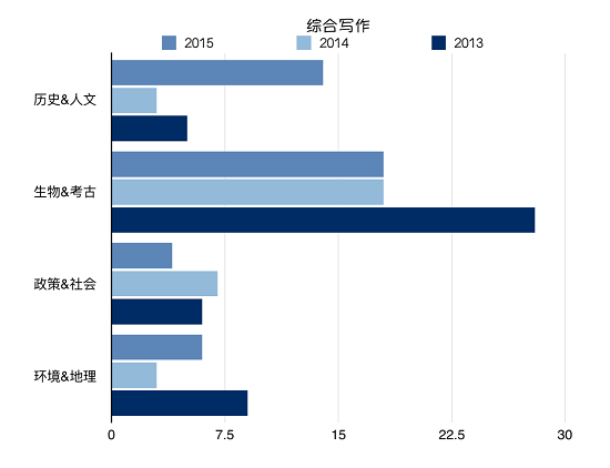 2015年綜合寫作部分的高頻依然毫無懸念,依舊是生物&考古類的文章!