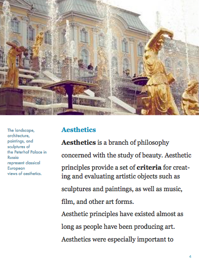 借著這片文章,學生們將會領略到美的構成要素,并且通過眾多的中西方的建筑,攝影,雕塑去感受抽象的概念。