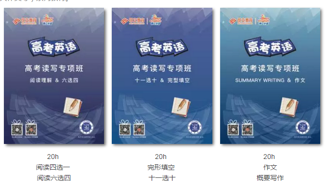 1. 本課程使用自編的《高考讀寫專項班》(含四選一,六選四,完形,十一選十,summary writing和大作文等)系列教材。
